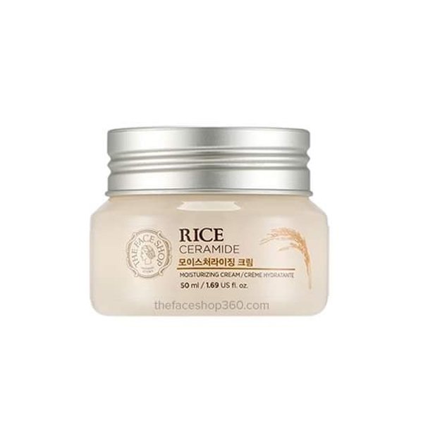 Rice Ceramide Moisture Cream The Face Shop – a moisturizer with quintessential ingredients extracted from rice. Helps bring moisture, smooth skin, helps create a protective film for the skin. Resists dehydration, oxidation, and harmful effects from the surrounding environment, making skin bright, smooth and smooth. Rich in vitamins B, E and fatty acids to help soften, clean and brighten skin.